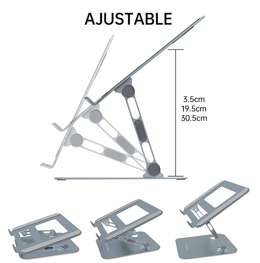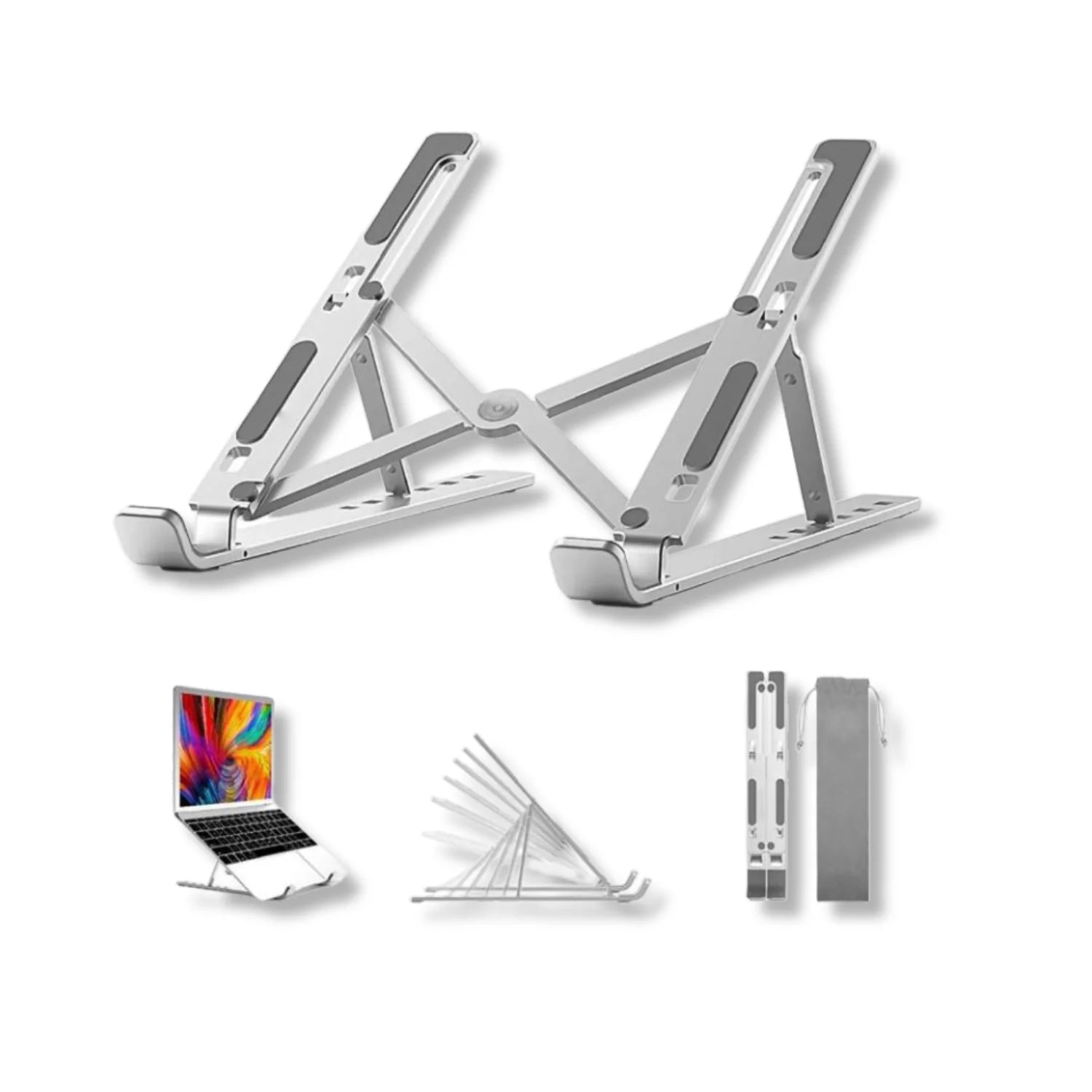 Su diseño moderno y resistente combina ligereza con estabilidad, lo que permite transportarlo fácilmente sin perder firmeza. Es plegable, antideslizante y compatible con distintos tamaños de laptops. Además, su estructura abierta facilita la circulación del aire, evitando el sobrecalentamiento y asegurando el mejor rendimiento de tu equipo.